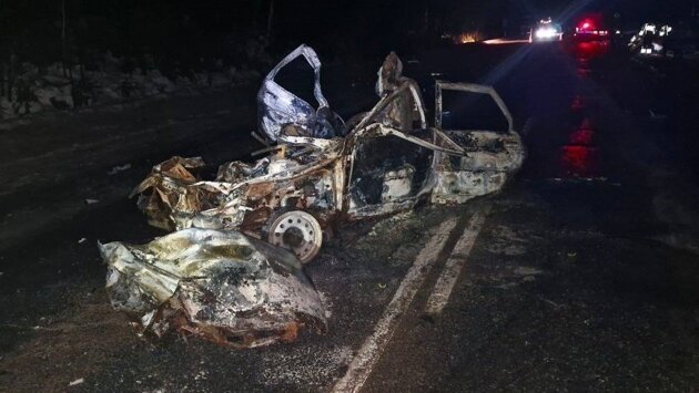 "Произошло столкновение автомобилей Iveco и ВАЗ-2112, от удара оба автомобиля загорелись. В результате происшествия три человека погибли", - говорится в сообщении.