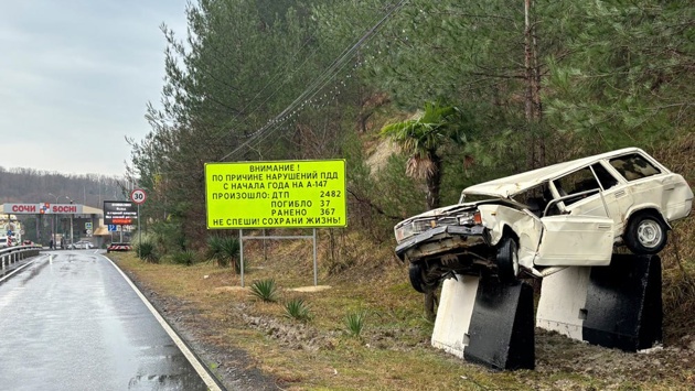 На федеральной трассе А-147 Джубга - Сочи на возвышении установили остов автомобиля, пострадавшего в жестком ДТП. Об этом сообщили в пресс-службе упрдор "Черноморье".