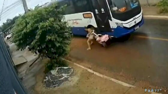 27-летняя мать двухлетней дочери, прогуливаясь 7 января в районе Милтон Фигейредо (город Варзеа Гранде, штат Мато Гроссо, Бразилия), чудесным образом не угодила под колёса автобуса, водитель которого не заметил женщину с ребёнком.