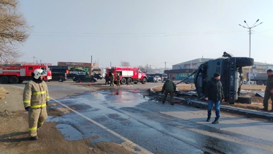 В Приморском крае из-за опрокидывания бензовоза произошел розлив топлива