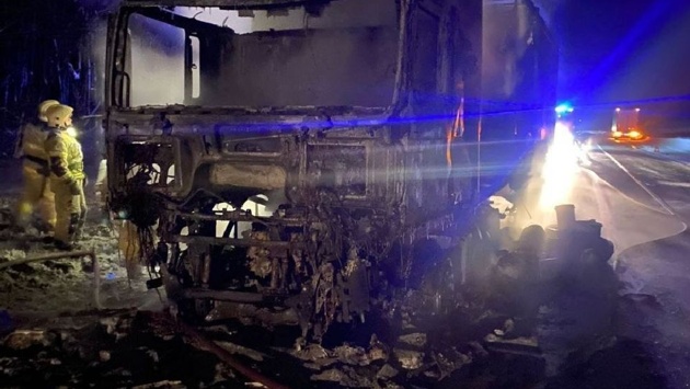 К счастью, никто не пострадал, но товар, который перевозила фура, полностью сгорел.