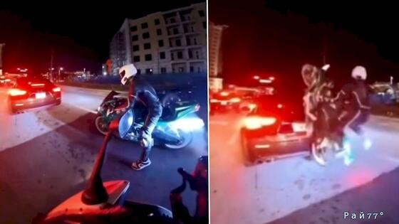 Со слов автора видео, опубликованного в популярной в Поднебесной соцсети, мотоциклисту потребовалось время, чтобы прийти в себя. Детали и последствия происшествия не уточняются. »»ВИДЕО««