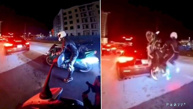 Мотоэкстремал допустил серьёзную ошибку, непроизвольно выжав газ на двухколёсном транспортном средстве, после чего на полном ходу врезался в легковушку.