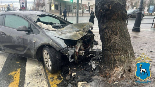 В Самаре 1 февраля иномарка загорелась после столкновения с деревом