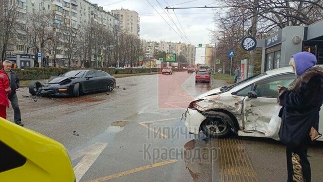 Днем 4 февраля в Краснодаре произошло серьезное ДТП. Дорогу на улице Тюляева не поделили две иномарки.
