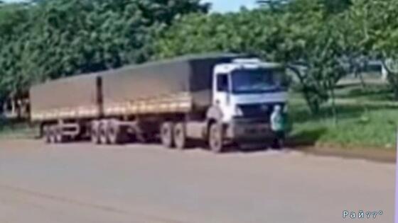 68-летняя жительница муниципалитета Канарана (штат Мату-Гросу, Бразилия) пережила неприятные моменты в своей жизни, когда оказалась на пути у длинновоза.