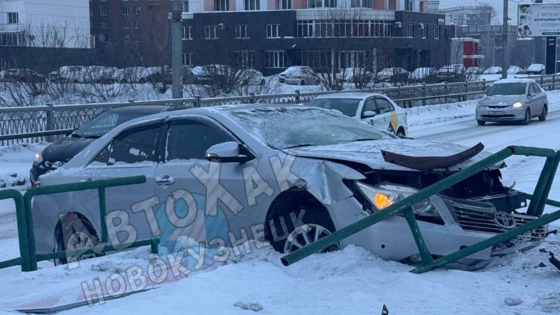 В Новокузнецке произошла авария рядом со зданием Госавтинспекции. Машина влетела в ограждение.