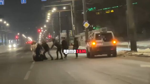 Конфликт развернулся на проезжей части и препятствовал движению. Мужчина и женщина избивали ногами лежавшего на дороге человека. Агрессоров остановили двое мужчин.
