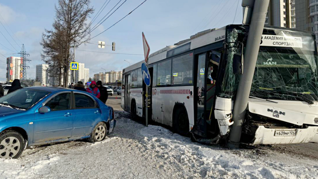 Дорожная авария с участием иномарки и пассажирского автобуса произошла в центре Красноярска. За медицинской помощью обратились семь человек.