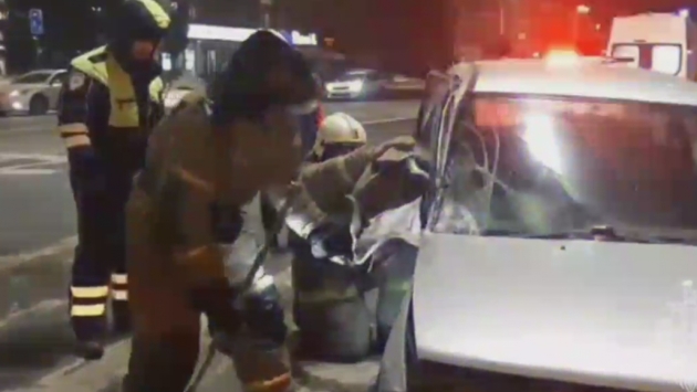 Пожарные при помощи гидравлического инструмента освободили мужчину и передали его медикам.