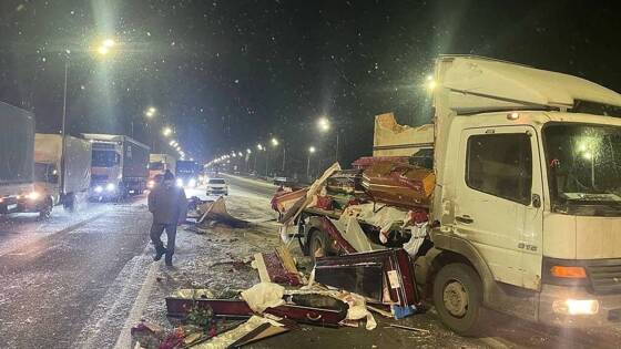 Во Владимирской области после аварии на трассе гробы с телами разлетелись из грузовика. Об этом сообщает KP.RU.