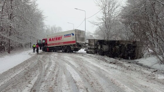 Массовая авария с фурами произошла на заснеженной дороге в Краснодарском крае