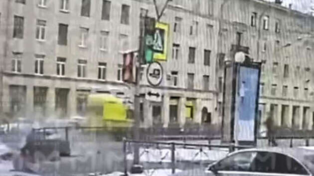 В Петербурге на видео попало, как реанимобиль врезался в Ford и снес забор