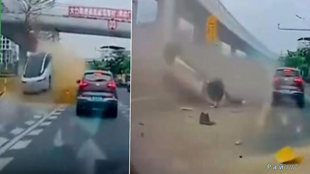 Участник дорожного движения, передвигавшийся несколько дней назад на автомобиле по оживлённой магистрали в китайском мегаполисе, стал очевидцем стремительного ДТП.