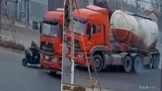 Китаец на мотороллере пережил столкновение с цистерновозом