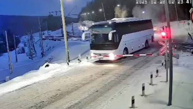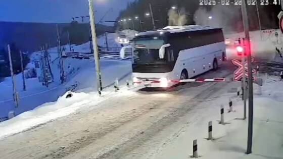В России водитель остановил автобус на пути перед мчавшимся поездом и попал на видео