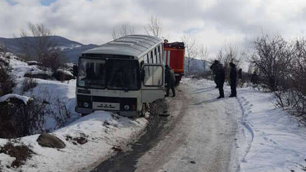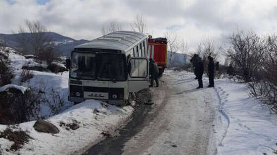 В Южной Осетии рейсовый автобус сошел с проезжей части и завис над обрывом
