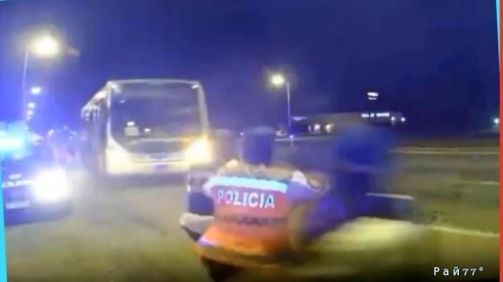 Судя по кадрам, предоставленной Рай77° видеозаписи, изначально никто из стражей правопорядка не заметил, как автобус съехал с полосы для движения и стремительно приближался к ним сзади. В самое последнее мгновение они повернули головы и увидели, как автобус стремительно приближается к ним. Стражи правопорядка успели покинуть дорогу прямо перед "носом" рейсового транспортного средства и спастись.