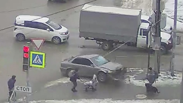 В пятницу, 7 марта в центре Новосибирска Honda Accord на большой скорости едва не сбила несколько человек. На опубликованной телеграм-каналами видеозаписи видно, как машина на большой скорости заезжает на перекрёсток Красного проспекта и Крылова и, пытаясь уйти от столкновения с другим автомобилем, вылетает на тротуар, по которому в этом момент шла женщина с детской коляской и мужчина с собакой.