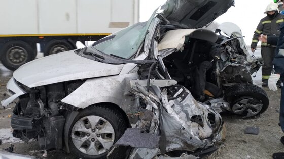 В ГАИ пояснили: водитель легковой машины сначала врезался в дорожное ограждение, а затем - в грузовик. Он получил травмы и был госпитализирован.