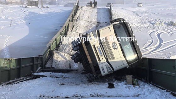 Мост в селе Черкех, расположенном в Таттинском районе республики Саха (Якутия), получил повреждения при проезде по нему грузового автомобиля. Об этом сообщила пресс-служба региональной прокуратуры в Telegram-канале.