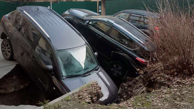 "Страна.ua": несколько машин провалились под асфальт в центре Киева