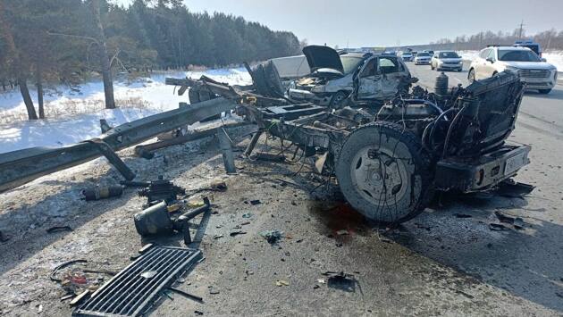 Груда железа: под Новосибирском большегруз собрал встречные авто во время обгона
