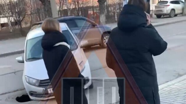 «Машина провалилась под асфальт в центре города. ДТП случилось примерно в 14:35», - уточнил автор.