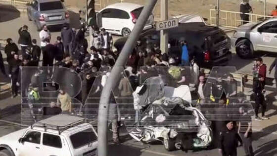 В Махачкале бронетранспортер (БТР) переехал легковой автомобиль с человеком внутри. Об этом сообщает Telegram-канал Baza. "Авария произошла на Карабудахкентском шоссе. По словам очевидцев, бронетранспортер снес "Ладу Приору" в районе пешеходного перехода у дома 57", - говорится в сообщении. Очевидцы запечатлели происходящее на видео. На кадрах видно, что на месте ДТП собралось много людей. Белый легковой автомобиль получил серьезные повреждения: кузов полностью смят. На записи также видно, что на место аварии прибыли экстренные службы города. При этом недалеко от места ДТП стоит БТР. По информации источника, человек, который находился в автомобиле, получил травмы, несовместимые с жизнью. До этого сообщалось, что в Благовещенске женщина устроила истерику из-за того, что ее автомобиль эвакуировали. На кадрах видно, что женщина громко кричит, топает и плачет, при этом подруга пытается ее успокоить.