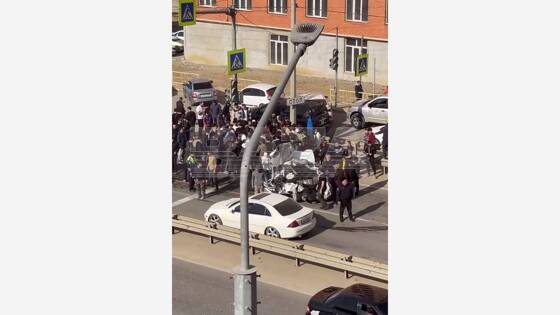 В Махачкале бронетранспортер (БТР) переехал легковой автомобиль с водителем внутри. Об этом сообщает Telegram-канал Baza.