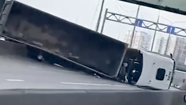 В Подмосковье перевернувшаяся фура блокировала шоссе