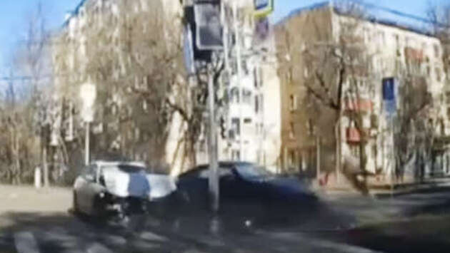 В Москве на перекрестке столкнулись две легковые машины. Об этом сообщает Telegram-канал "Москва на дорогах". Видеорегистратор автомобиля, водитель которого стал очевидцем ДТП, запечатлел происходящее на видео. На кадрах видно, что белый легковой автомобиль сталкивается с черной машиной на повороте. От удара последняя врезается в дорожный знак, и из нее через окно на проезжую часть вылетает человек. Далее прохожий бежит на помощь к пострадавшему. На записи также видно, что оба автомобиля получили серьезные повреждения. У белой машины треснуло лобовое стекло, смялся капот и бампер. Кроме того, после столкновения из автомобиля шел дым. До этого сообщалось, что в Москве кровля бизнес-центра "Персей" обрушилась на семь автомобилей. Очевидцы запечатлели происходящее на видео. На кадрах видно, что упавший рубероид накрыл несколько припаркованных возле центра машин. Повреждения получили семь автомобилей.
