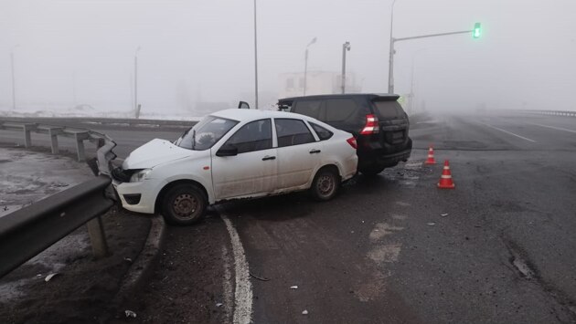 Первое ДТП случилось в 7:30 утра. 67-летний водитель Ленд Крузера ехал на запрещающий сигнал светофора и столкнулся с Лада Гранта. После столкновения водитель легковушки наехал на барьерное ограждение.