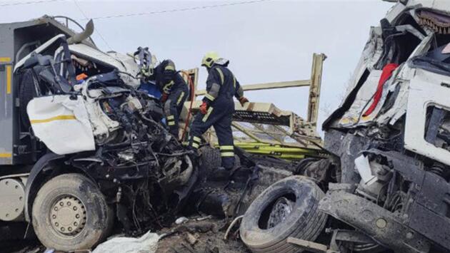 Водитель одного из тягачей погиб на месте. Он был зажат в кабине. Во время работ по деблокировке спасатели использовали гидравлический инструмент: кусачками срезали дверь и стойку, а гидравлическим домкратом отжали приборную панель.