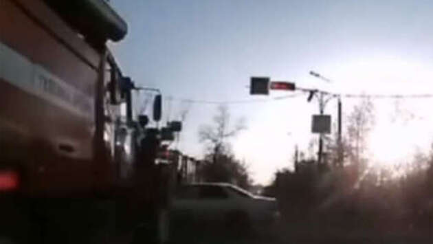 На видео попал момент ДТП в Хакасии, где девушка вылетела под пожарную машину