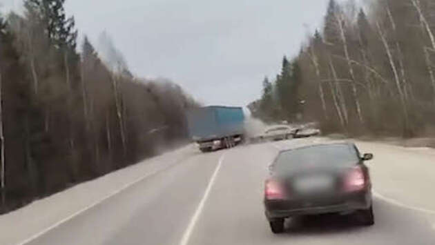 В Калужской области на видео попало, как фура протаранила встречную легковушку