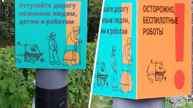 В Москве появились таблички с просьбой уступать дорогу роботам