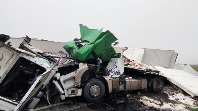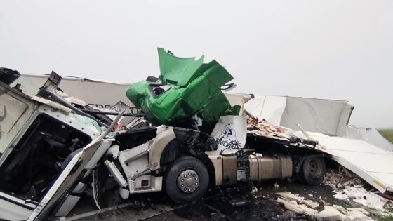 За рулем первой машины был гражданин Кыргызстана. Он выехал на встречку, потому что не справился с управлением. Удар был настолько сильным, что огромные фуры разорвало на части.