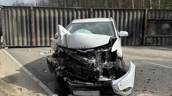 Внедорожник расплющило выпавшим из грузовика контейнером