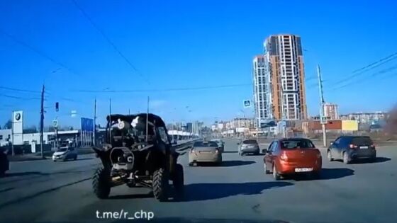 Ранее в сообществе «Злой Ижевчанин» опубликовали видео, на котором водитель багги нарушает ПДД на дороге в Ижевске. В результате он врезался в один из автомобилей и скрылся.