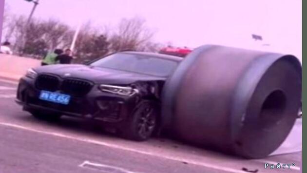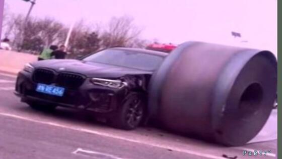 Китайского владельца транспортного средства немецкого производства чудом минула участь быть раздавленным металлическим изделием, выпавшим с платформы грузовика.