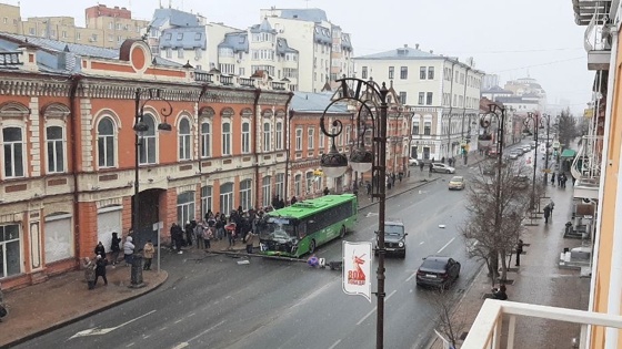 В центре Екатеринбурга автобус №70 влетел в стоящий на остановке автобус №24