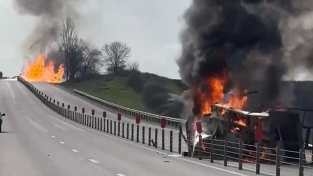 В КБР на трассе "Кавказ" после столкновения сгорели бензовоз и грузовой фургон