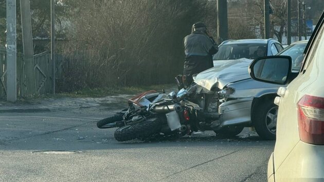 Кадры с последствиями аварии появились в Сети. Мотоцикл столкнулся с ВАЗ-2115, у автомобиля сильно повреждена передняя часть. У водителя двухколесного транспорта, по словам очевидцев, сломана рука. На место прибыли медики.