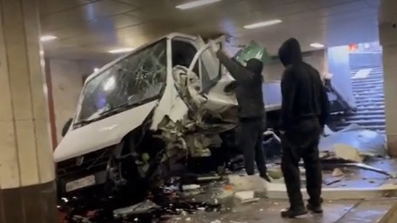 «Газель» въехала в подземный переход на станции «Парк Победы» в Москве