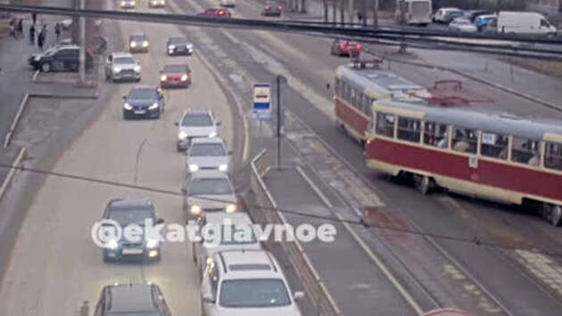 В Екатеринбурге трамвай столкнулся с автомобилем и сошел с рельсов