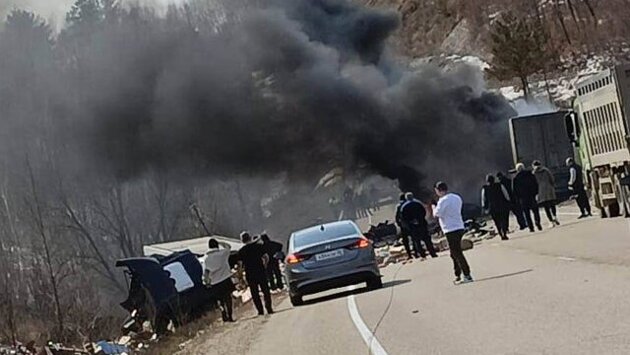 При этом снявшие на видео ДТП очевидцы сообщают, что в результате сильного удара грузовиков на проезжую часть и обочину разлетелись детали, в том числе двигатель, пишет РИА Новости.