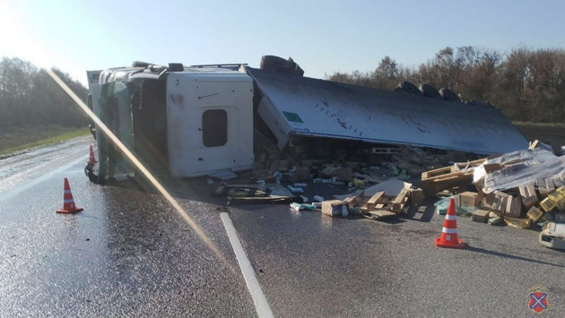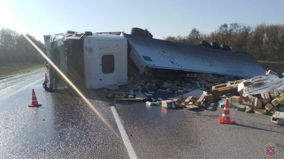 Фура перевернулась на трассе под Волгоградом