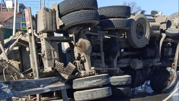 Отказали тормоза: в Самаре опрокинулась бетономешалка
