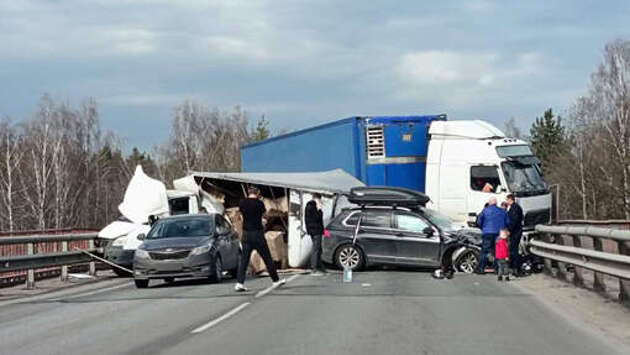 В Подмосковье столкнулись несколько легковых автомобилей и два грузовика. Об этом сообщает Telegram-канал "Осторожно, Москва". "Пробка на несколько километров растянулась в Подмосковье из-за массовой аварии. Сразу несколько автомобилей – два грузовика и несколько легковых машин – столкнулись на Кудиновском шоссе в Подмосковье. Движение в районе аварии ограничено", - говорится в сообщении. На опубликованных в сети кадрах видно, что несколько транспортных средств получили повреждения. На записи также заметно, что запчасти от автомобилей разбросаны на проезжей части. По информации источника, на место ДТП прибыли экстренные службы. До этого сообщалось, что в Санкт-Петербурге автомобиль Lexus сбил шестиклассника. Уличная камера запечатлела инцидент. На кадрах видно, как ребенок переходит дорогу, в этот момент его сбивает автомобиль, который сразу же уезжает. На записи также видно, как ребенок встал с проезжей части и начал хромать.